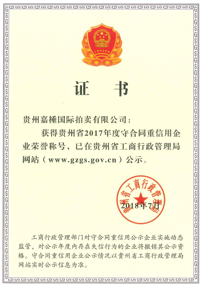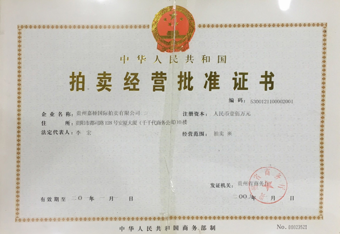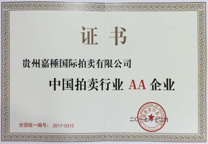 貴州嘉棰國際拍賣有限公司是主要從事動產、不動產、無形資產和文物藝術品拍賣業(yè)務的大型綜合性拍賣企業(yè),是中國拍賣行業(yè)協會會員,貴州省拍賣行業(yè)協會理事單位,中國拍賣行業(yè)協會AA級資質企業(yè),貴州省連續(xù)十一年重合同守信用企業(yè),全省拍賣先進企業(yè),貴州省公物拍賣人。公司充分利用多年來積累的客戶資源和全新的經營理念服務于貴州經濟發(fā)展。同時也為貴州省國有企業(yè)的資產重組、改制改造以及不良資產的變現,起到積極的作用。貴州嘉棰國際拍賣有限公司自成立以來,多次成功地組織了房產、土地、機器設備和各種物資等標的拍賣。并于2001年12月成為第一批貴州省高級人民法院及多家金融機構指定的拍賣企業(yè)。 公司下設產權部、市場發(fā)展部、財務部、人事部和辦公室。現有員工11名,大專以上學歷員工占總數的90%,擁有精通業(yè)務的專門人才。有國家注冊拍賣師3名,公司工作人員大多參加過中國拍賣行業(yè)協會組織的從業(yè)資格培訓。公司堅持“客戶至上,執(zhí)業(yè)嚴謹,公平競.....